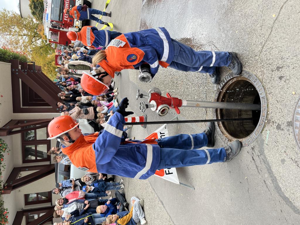 Um 14 Uhr folgte die Schauübung der Jugendfeuerwehr am gegenüberliegenden Backhaus, die von zahlreichen Gästen, insbesondere vielen Kindern, aufmerksam verfolgt wurde.