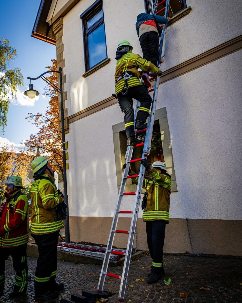 Am Samstag, 25.10. fand die jährliche Hauptübung der Feuerwehr Owen statt, Übungsobjekt war die Sibylle-von-der-Teck-Grundschule.
