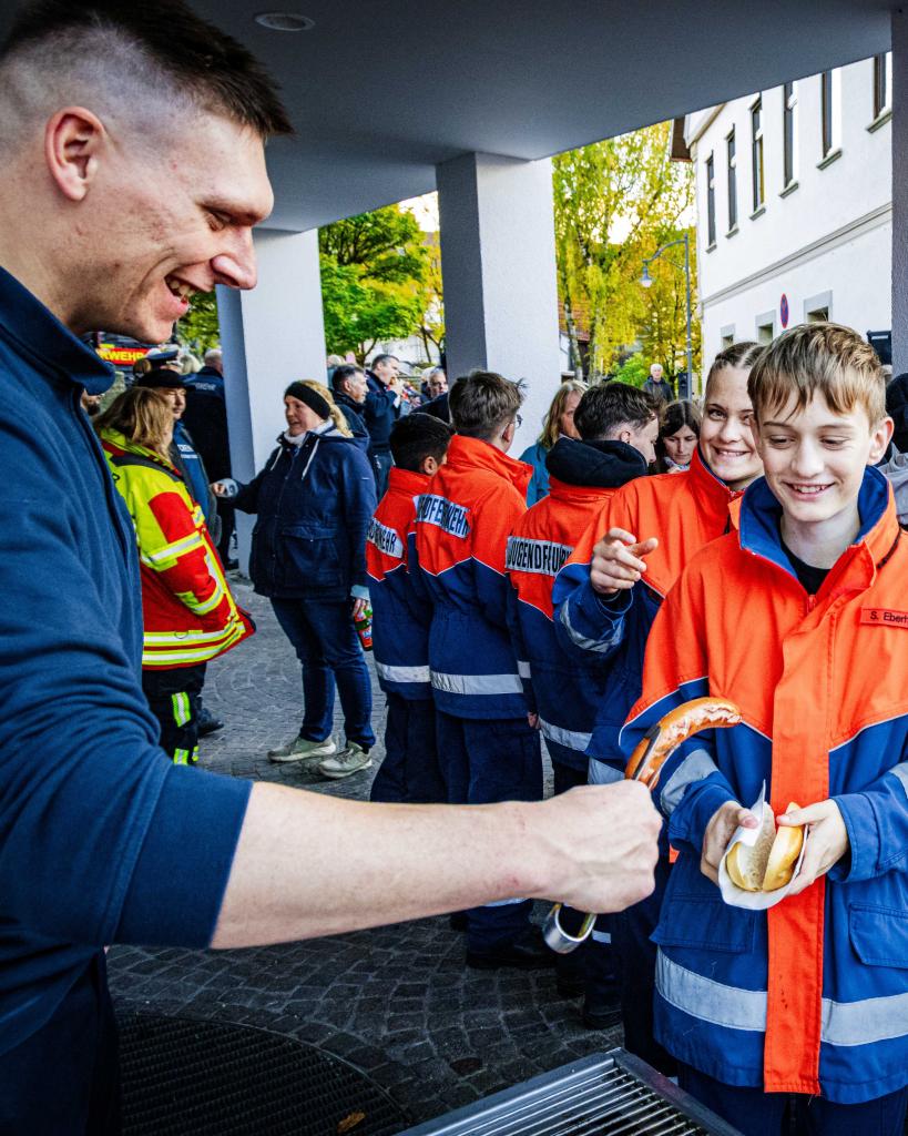 Für das leibliche Wohl der Bevölkerung sorgte die Owener Jugendfeuerwehr mit heißen Roten vom Grill und Getränken.
